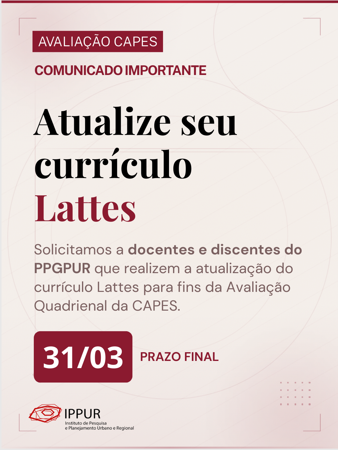 ATENÇÃO: Atualização do Currículo Lattes — Prazo até 31 de março